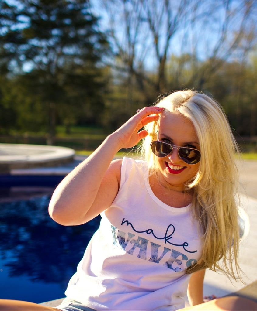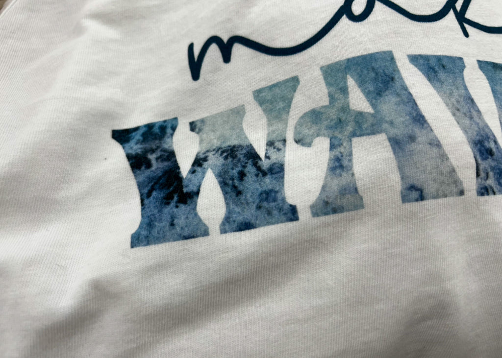 professionally printed direct to garment with soft, vintage inks in 8 colors on an white 100% soft cotton tank or tee.
